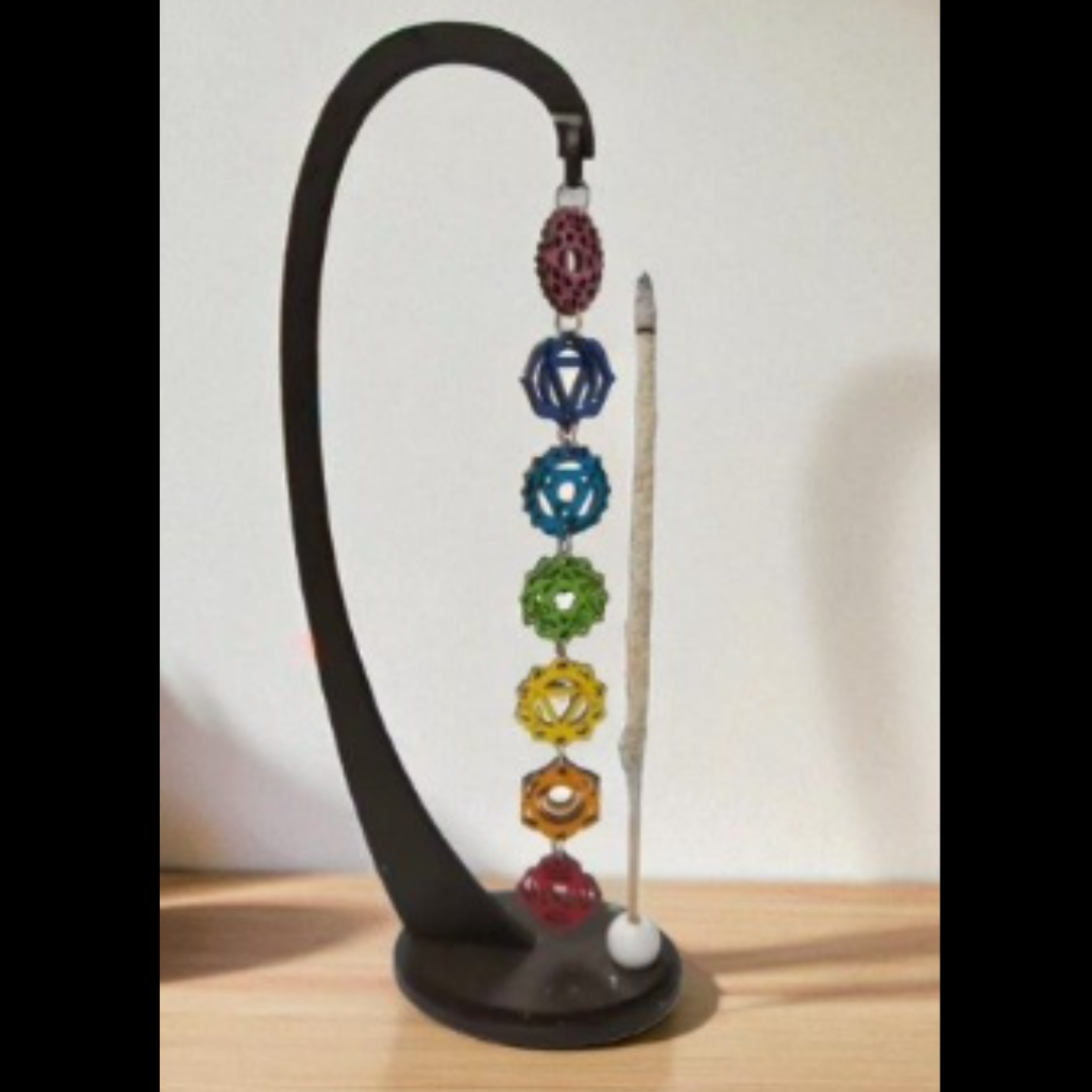 Portasahumerio de madera, diseño de cadena colgante tallada en madera con figuras geométricas representando los 7 chakras.