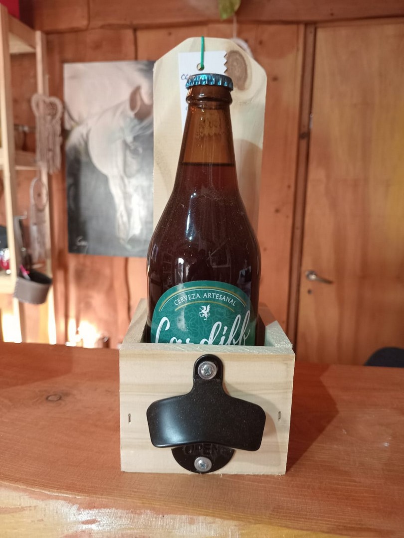 Caja Porta Cerveza con Abridor, ideal para regalar o colgar en tu cocina, lista para destapar una cerveza!