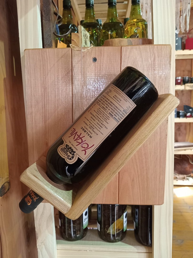 Portavinos Simple de Pared. Madera Pino lustrado con una leve entonación de color y laca.