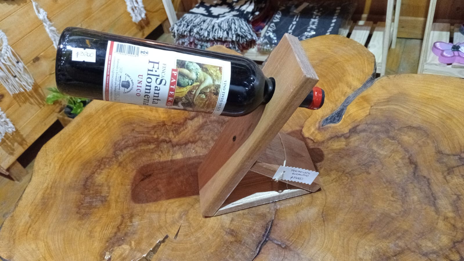 Portavinos de Mesa Obelisco. Madera Pino Lustrado con leve entonación de color y laca