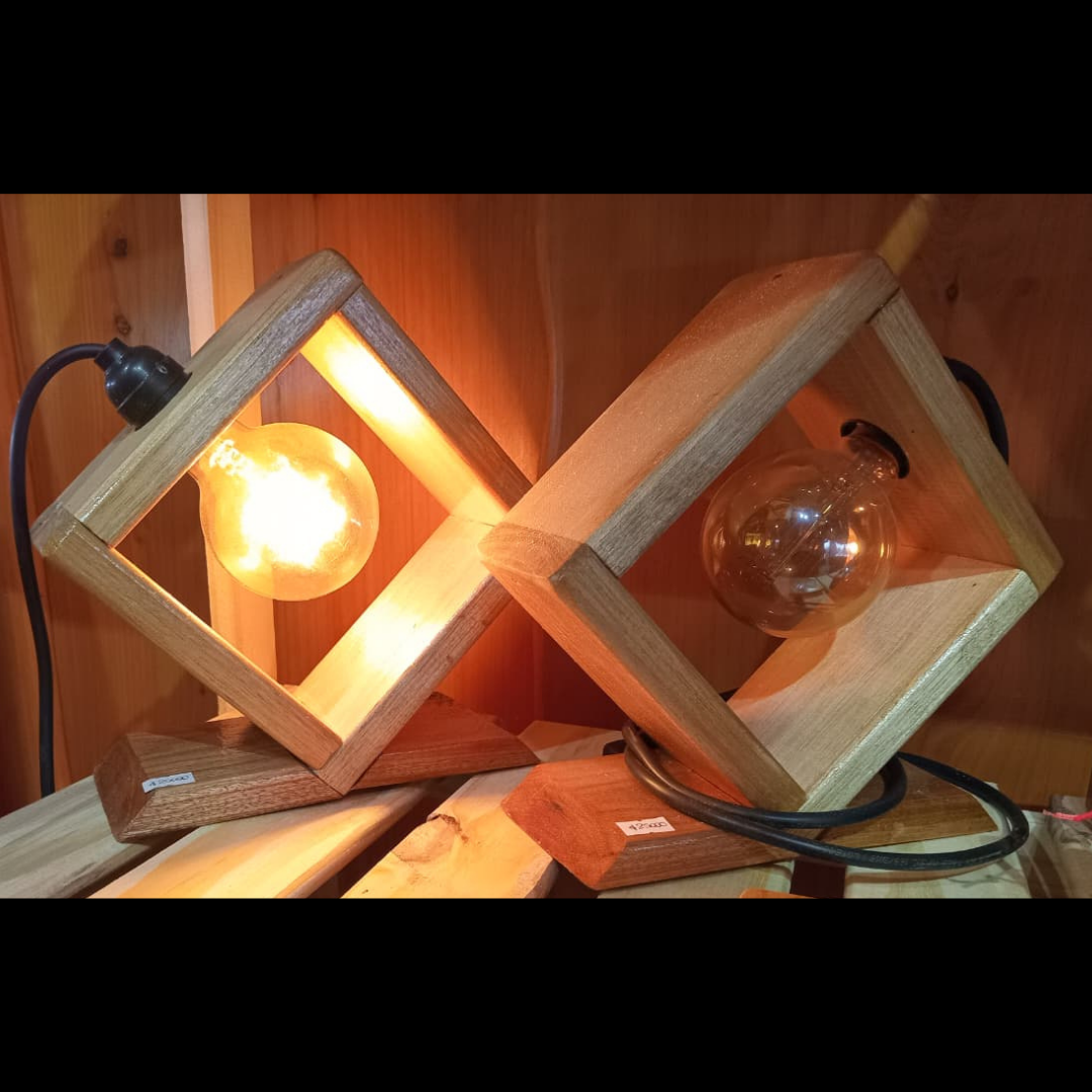 Velador en forma de Rombo, madera de Eucalipto, el valor es por unidad y sin lámpara